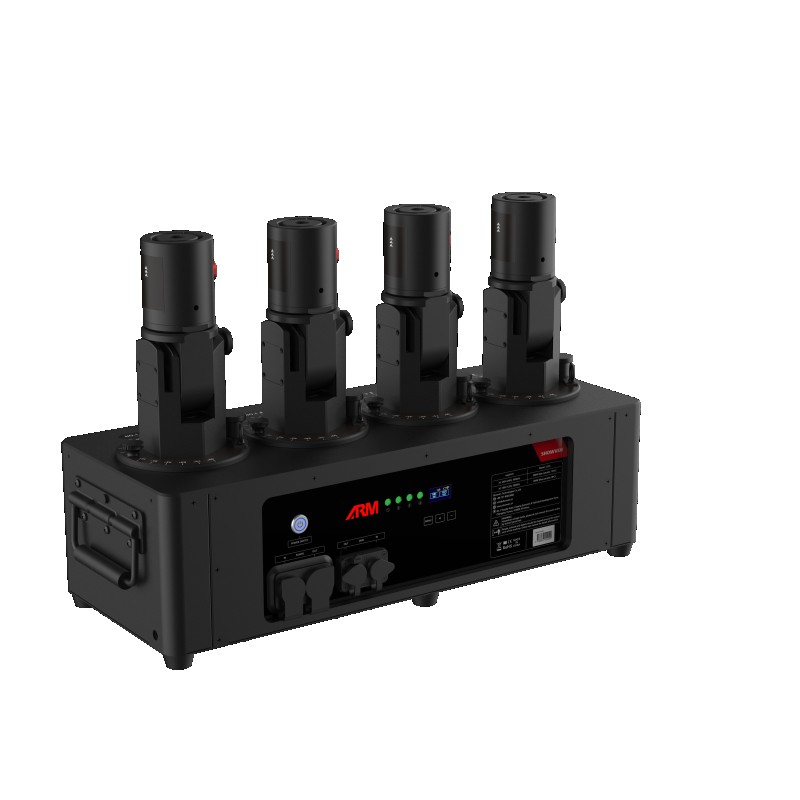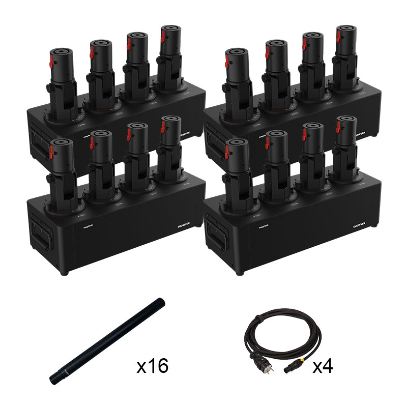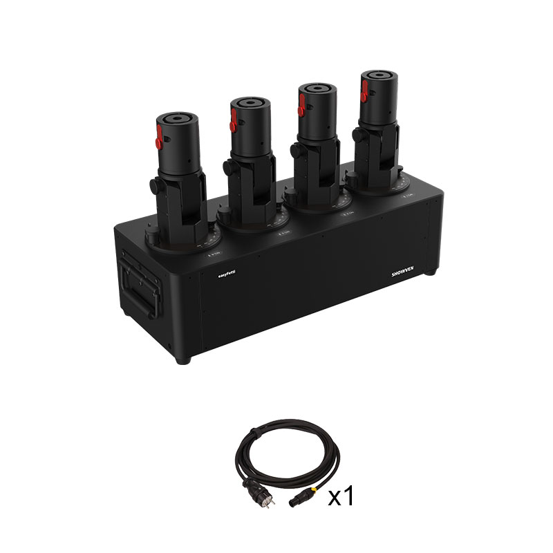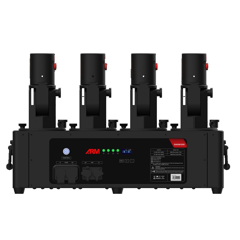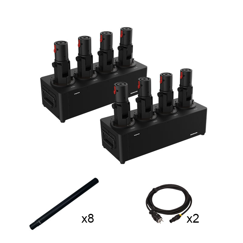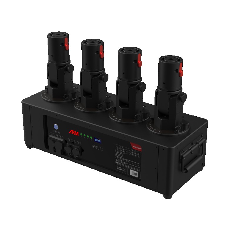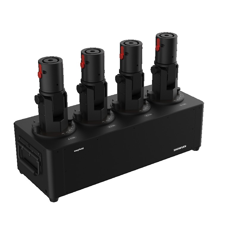 The EASY-FETTI CL24 is a professional confetti system featuring four independent cannons, each adjustable on two axes for precise control of the projection. Unlike conventional systems, compressed air is generated on demand by the machine and is not contained within the cannons, making the system easier to transport and operate.