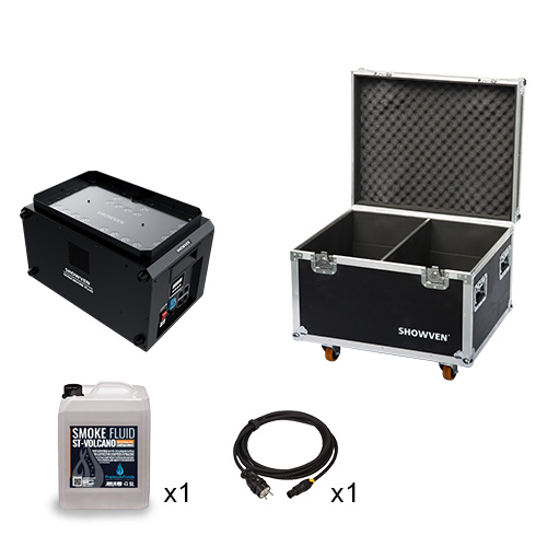 This machine is equipped with a compression system to boost the jet “Co2 style” and incorporates high-power 38x9W RGB LED lighting to ensure the coloring of the smoke.