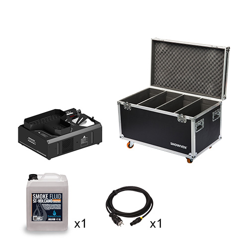 This machine is equipped with a compression system to boost the jet “Co2 style” and incorporates high-power 35x5W RGB LED lighting to ensure the coloring of the smoke.