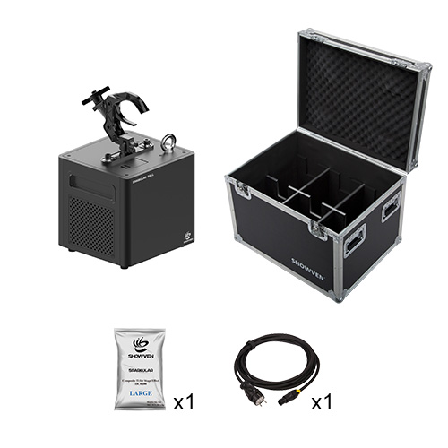 A flight case is available as an option. This model is also sold in sets of 2, 4 and 6 machines with DMX cable and flight case included.