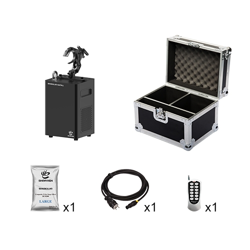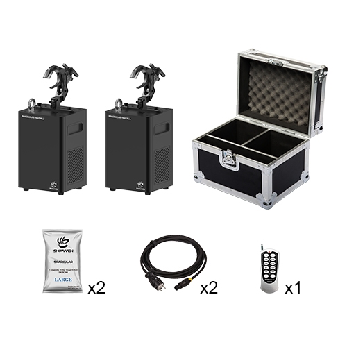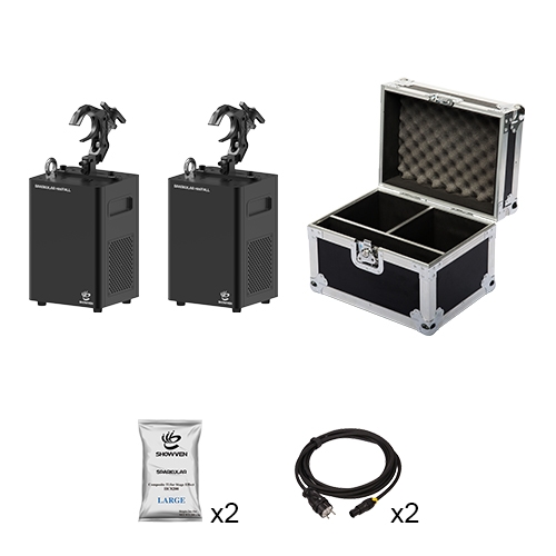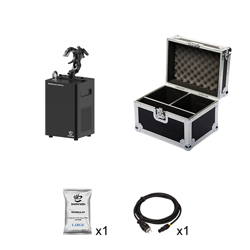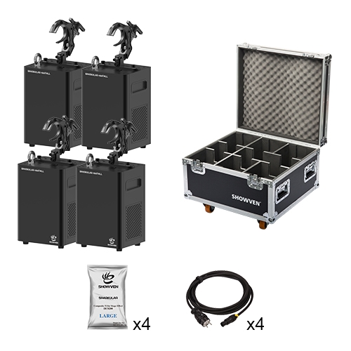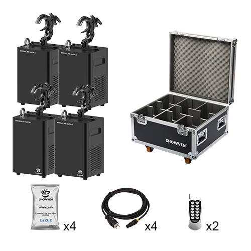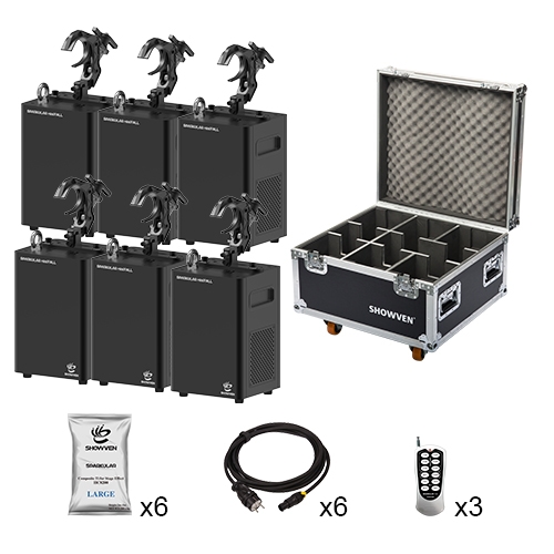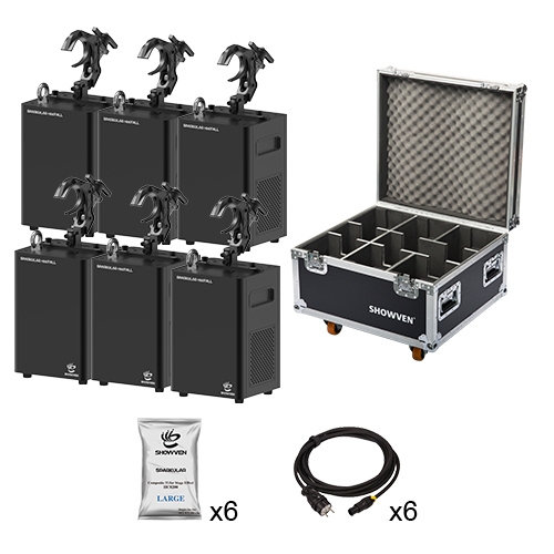 A flight case is available as an option. This model is also sold in sets of 2, 4 and 6 machines with DMX cable and flight case included.