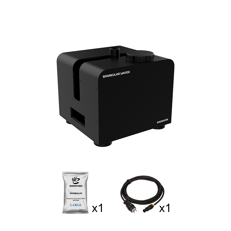 The Sparkular Waver is a cold spark jet machine that can be rotated up to 180°. Spraying power varies between 2.5 and 4.5 metres depending on the powder consumable used. It features automatic air compression with an internal tank. The machine has 72 predefined firing sequences and a range of modifiable spark effects, so you can express your creativity.