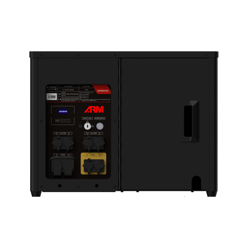The U-FLAMER GASBAR is a professional flame machine designed to create dynamic flame walls. It allows effects such as continuous flames, fire waves, chasing sequences or rhythmic triggering, making it ideal for indoor and outdoor stages and events.