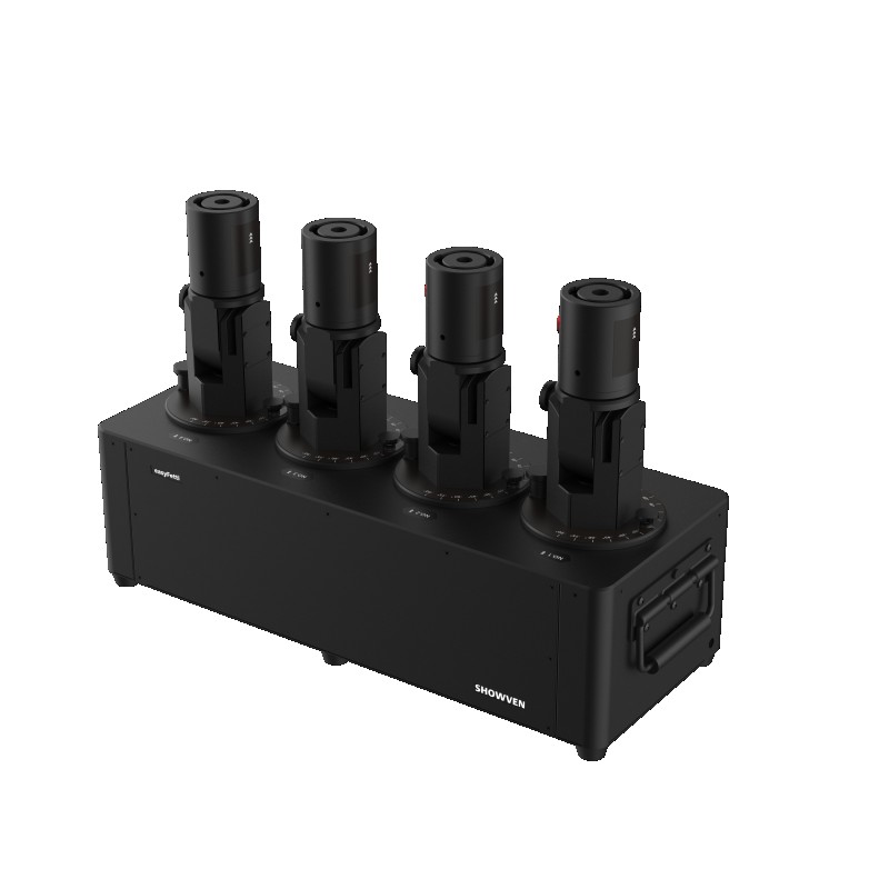 La EASYFETTI SHOT CL24 est une solution confetti professionnelle équipée de 4 canons indépendants, chacun réglable sur deux axes pour un contrôle précis de la diffusion.