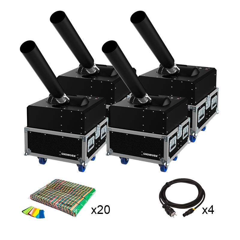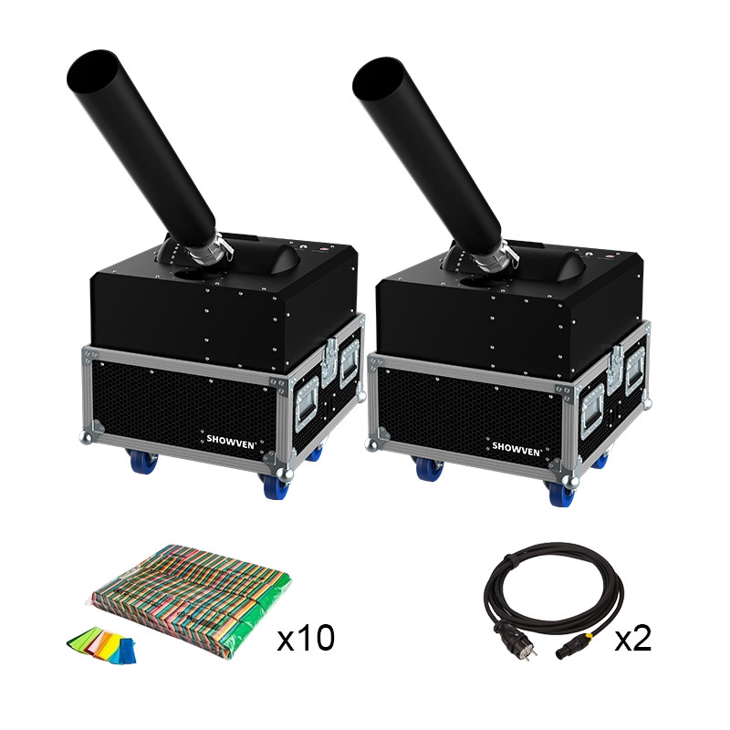 Une machine très puissante qui projette les confettis à 22 mètres et 45 mètres pour les streamers.